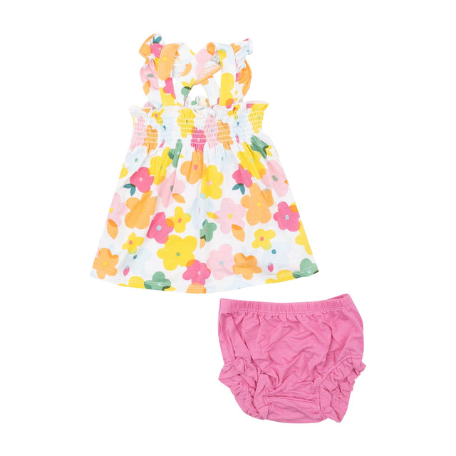 Ruffle Strap Smocked Top & Diaper Cover - Paper Floral by Angel Dear