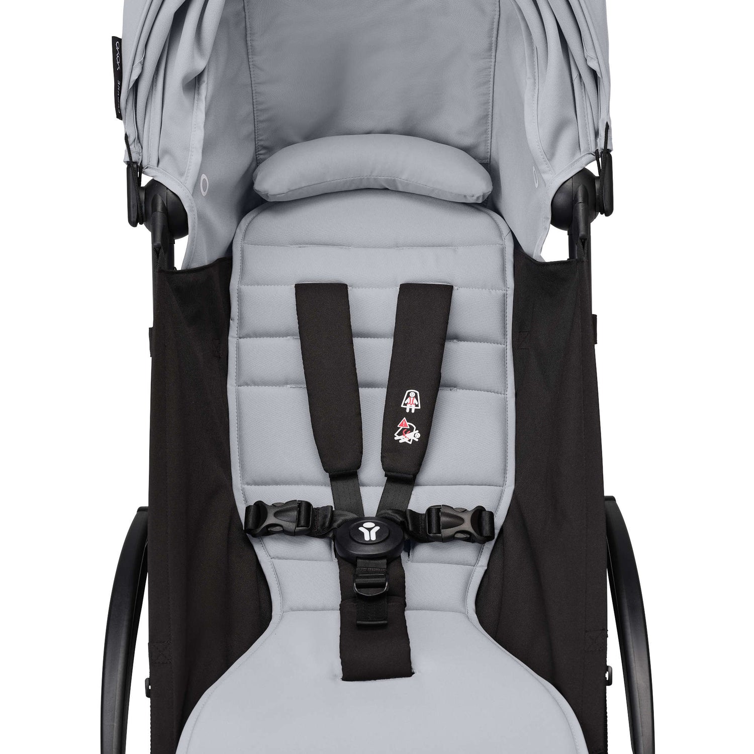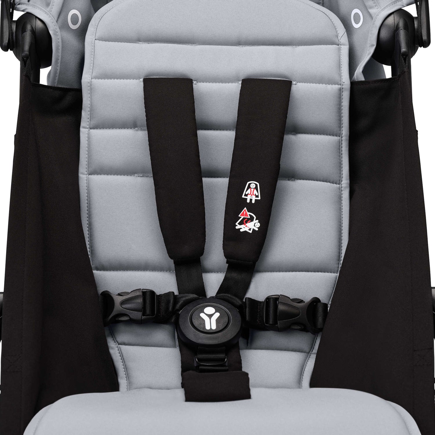 The version of the YOYO3 stroller distributed in USA and Canada features a 5-point harness that meets all regional safety standards and regulations. Please note that images are for reference only, as they show the Worldwide version of the harness.