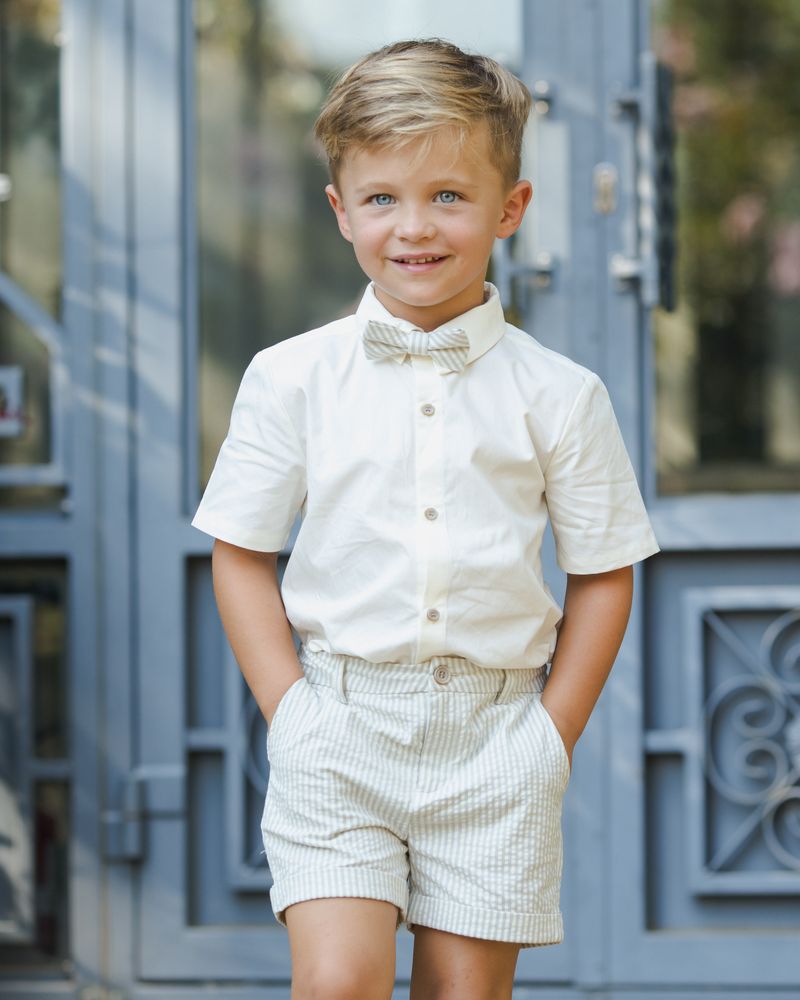 Our suspender shorts are the perfect staple piece for your little guy this spring! Effortless with button straps, an elasticized back waist, and pockets.