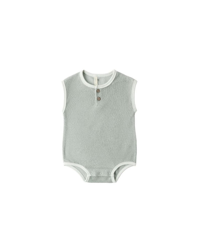 Terry Cloth Romper || Sage by Quincy Mae - 0/3M is backordered and will ship as soon as it is back in stock.