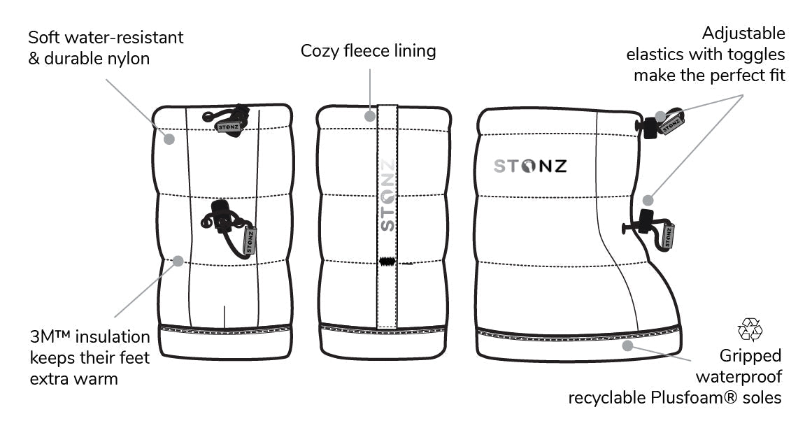 Perfect for your little explorer out in cold weather, Stonz Puffer Toddler Booties keep their feet dry & warm even in the middle of winter. The Stonz Puffer Toddler Booties use 3M thinsulate to keep them cozy in temperatures as low as -20ºC. Easy to get on and off for any impromptu backyard play session, these soft-sole non-slip shoes are perfect for early walkers that still have wobbly steps.