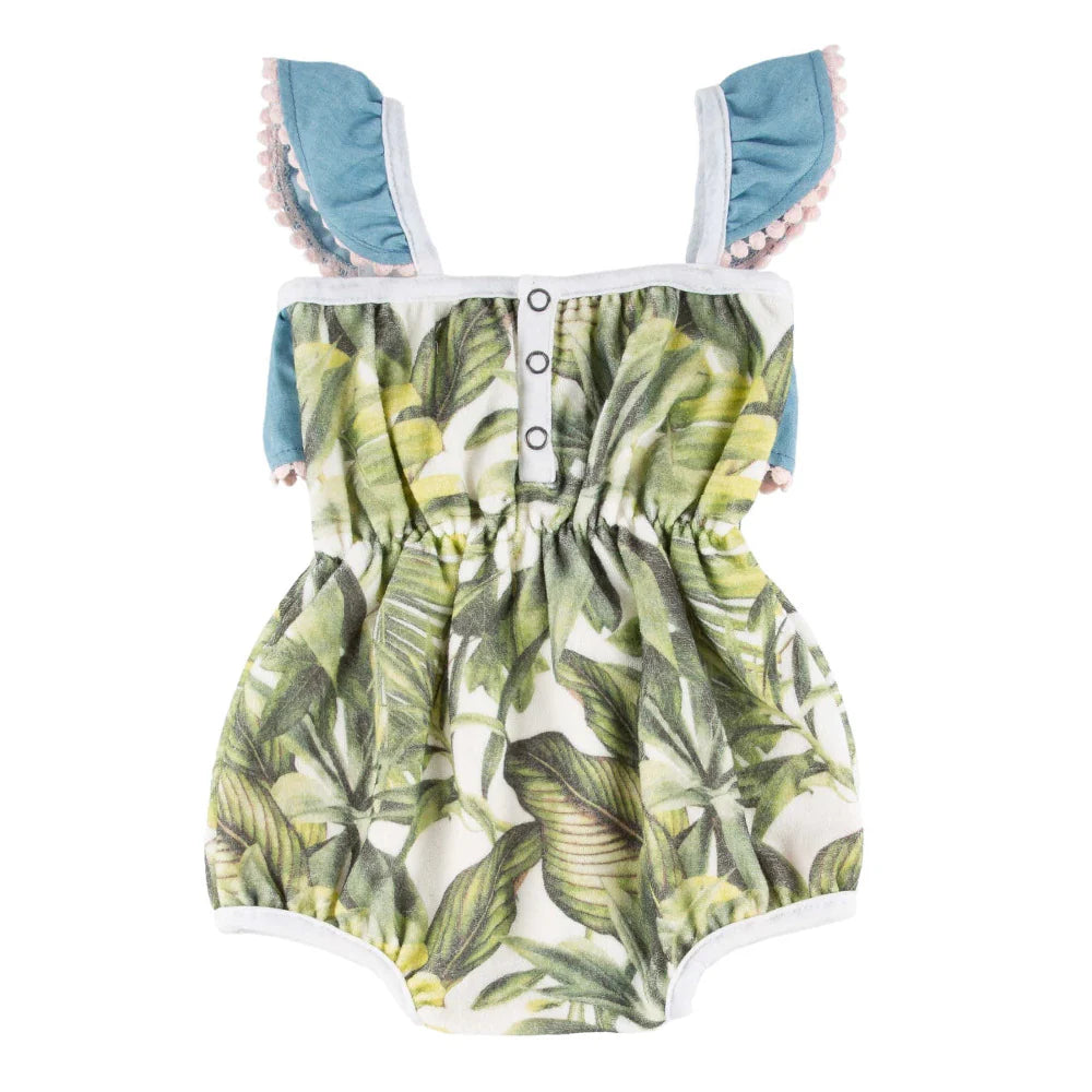 Keep it easy breezy with our Willow Bubble Cocoa Beach romper! This one piece features a playful palm print that's perfect for summer vibes. Complete with easy access snaps, you'll be ready for anything - so bring on the sun, sand, and surf!