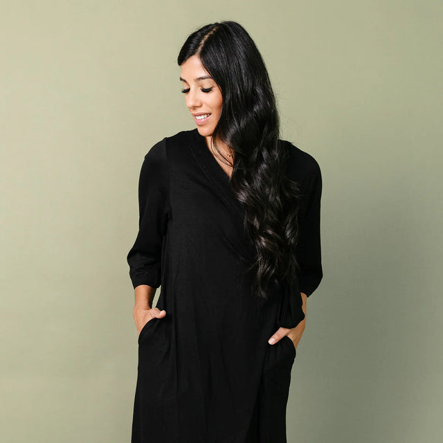 Now mom can enjoy the same buttery soft fabric that has made our swaddles a fan favorite. Featuring flowy, three-quarter sleeves, it closes with an internal tie placed a little higher up to accommodate growing bumps. (Though we know you’ll still love it once baby arrives.) You can even match with little ones for a fun mommy-and-me look.