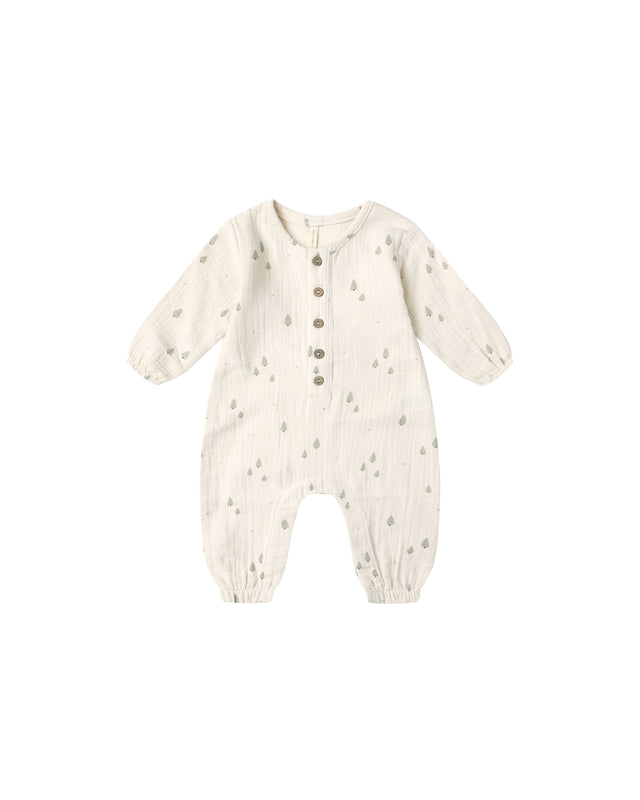 Woven Jumpsuit || Trees by Quincy Mae - 0/3M is backordered and will ship as soon as it is back in stock.
