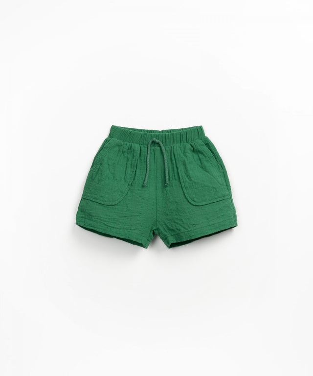 These shorts are made from organic cotton fabric in Botanical color. They have an elastic waistband and a decorative drawstring, with two front pockets.