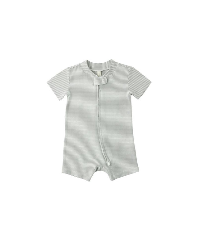 Zip Short Sleeve Sleeper || Sage Micro Stripe by Quincy Mae
