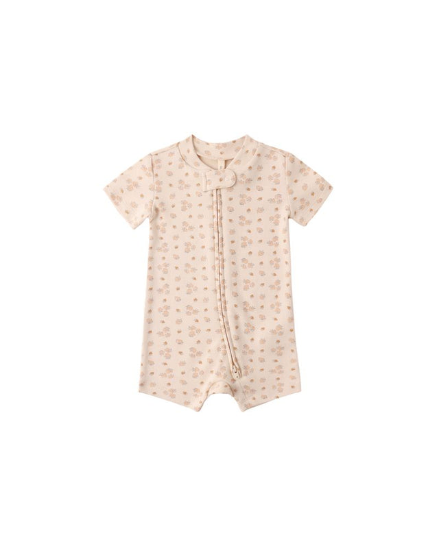 Zip Short Sleeve Sleeper || Strawberries by Quincy Mae - 0/3M is backordered and will ship as soon as it is back in stock.